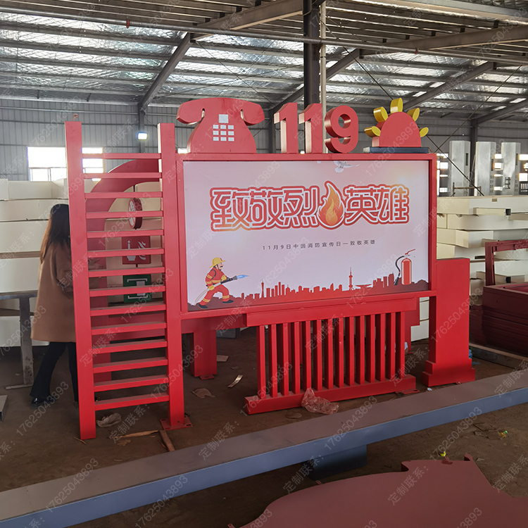 消防主題公園119文化廣場(chǎng)景觀座椅安全知識(shí)翻轉(zhuǎn)牌互動(dòng)翻翻樂雕塑